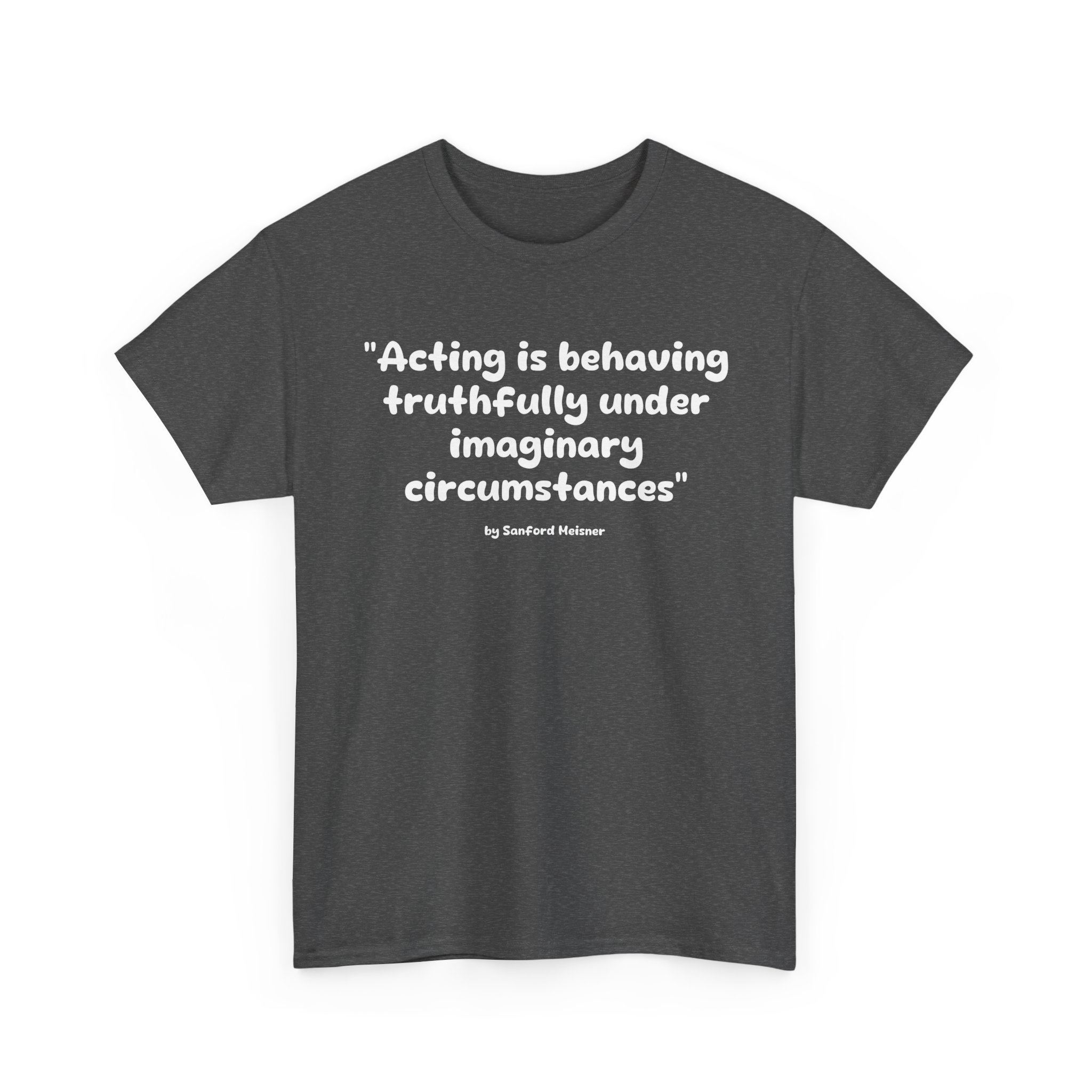 Theater Graphic T-shirt Design. Image with quoted text saying “Acting is behaving”