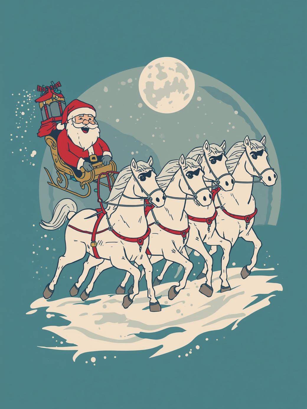 Santa happy with four horses and moon – Graphic T-shirt Design